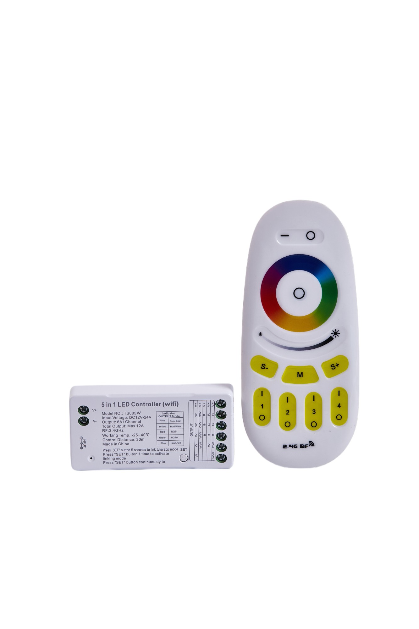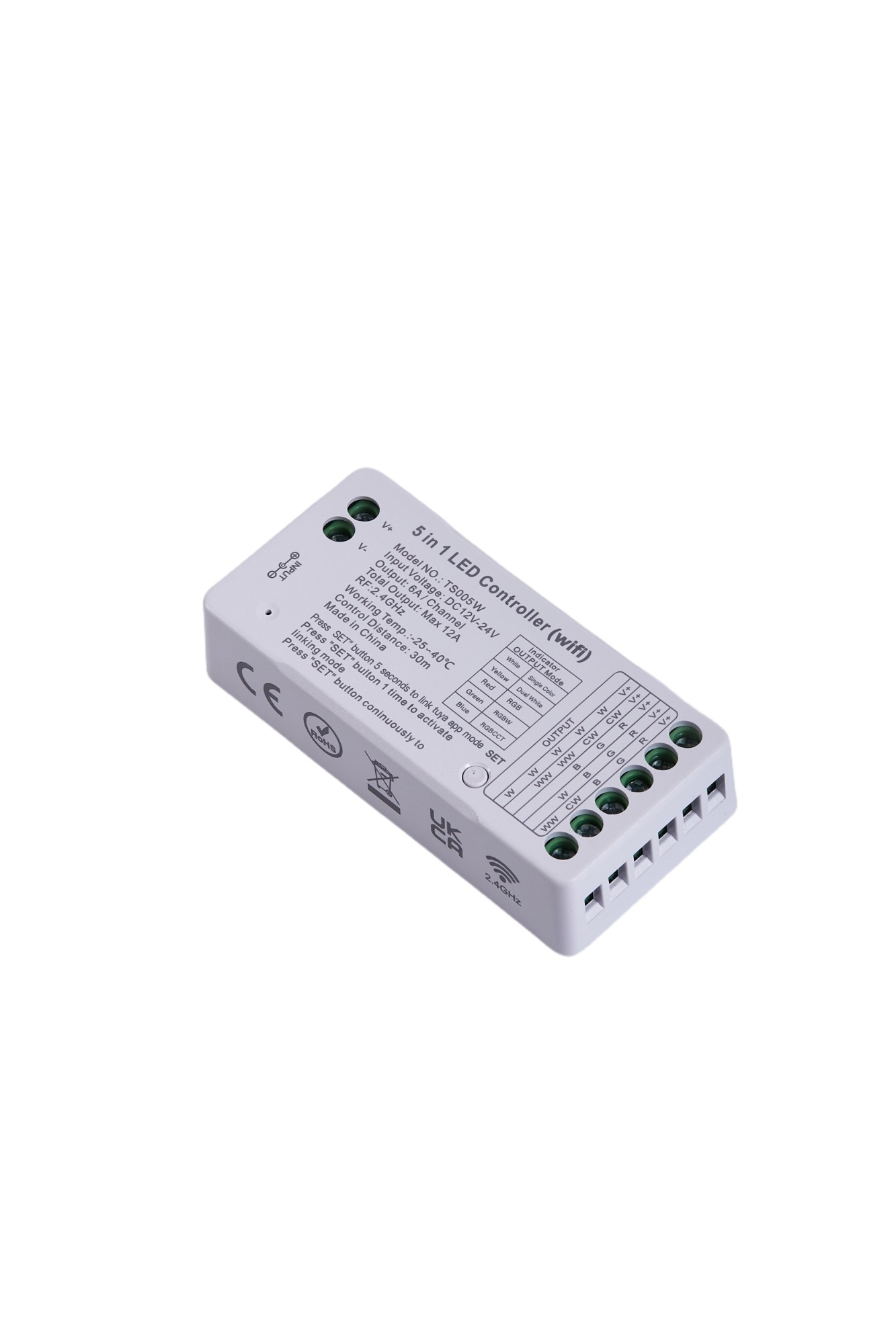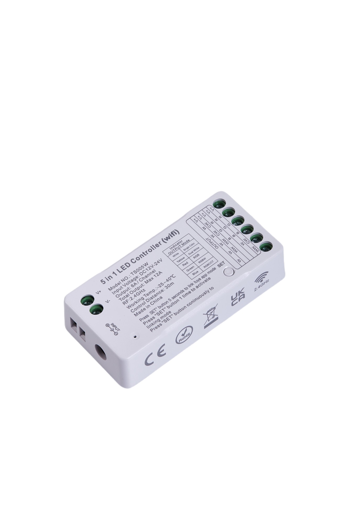 Our WiFi 5 in 1 LED controller is suitable for all kind of DC12V-24V LED strip light,such as Dimming /Dual White Color/RGB/RGBW/RGBCCT LED strip lights. It is so far the most advanced controller, which integrates RGB management, CCT adjusting, and dimming function.
